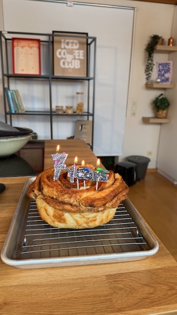 What makes this epic cinnamon roll so special is the layering technique - instead of making individual rolls, you cut the filled dough into strips and roll them together, creating a spectacular spiral effect with extra layers of cinnamon goodness. The result is a giant pastry that's crispy on the outside, soft and fluffy on the inside, and absolutely packed with cinnamon-sugar flavor.